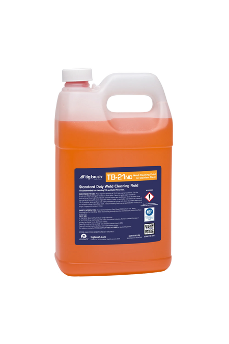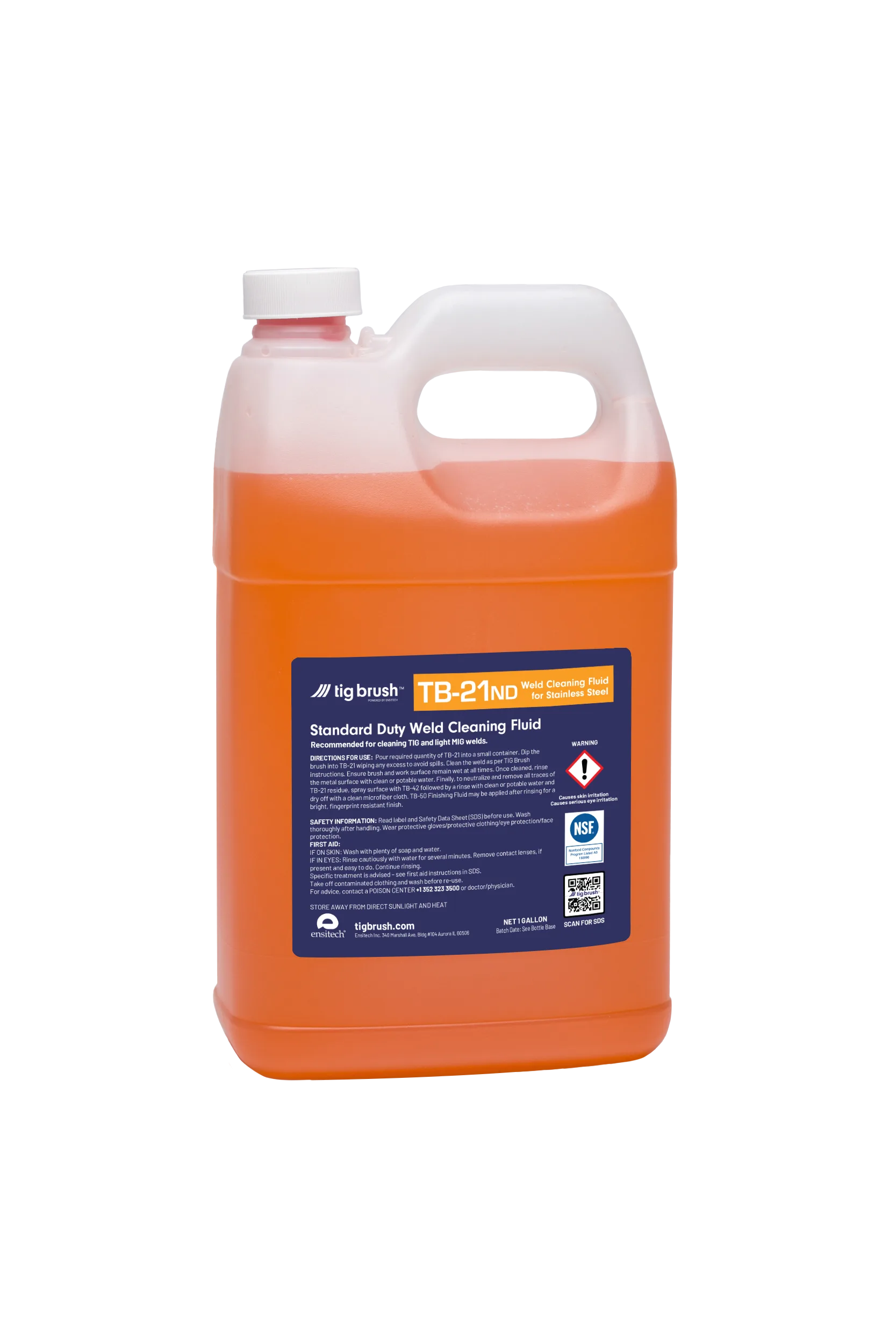 El TB-21 ND es un líquido de TIG Brush de alto rendimiento diseñado para trabajos ligeros de limpieza de soldaduras. Este líquido es capaz de limpiar, pulir y pasivar el acero inoxidable sin ser clasificado como corrosivo, a diferencia del fluido TB-25.